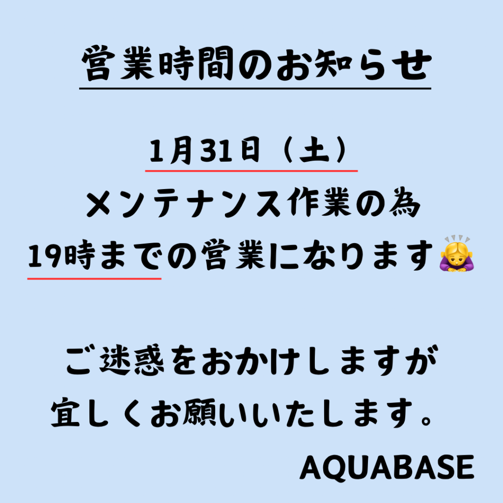 ※31日はメンテナンス作業の為19時までの営業となります。ご注意ください。