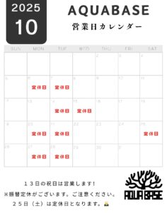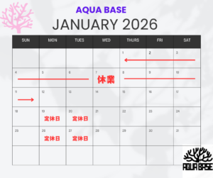いつもAQUA BASEをご利用いただきありがとうございます。 2026年1月は、12日より通常営業となります。皆様にはご迷惑をおかけしますが何卒よろしくお願いいたします。 また休業期間中のオンラインショップからのご注文 […]