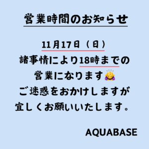 11月17日(日)営業時間のお知らせ 2024-11-16 | コメントはまだありません | お知らせ ご覧いただきありがとうございます。 11月17日(日)は勝手ながら18時で閉店となります。 ご迷惑をおかけしますが、宜しくお願いいたします。 もっと読む »